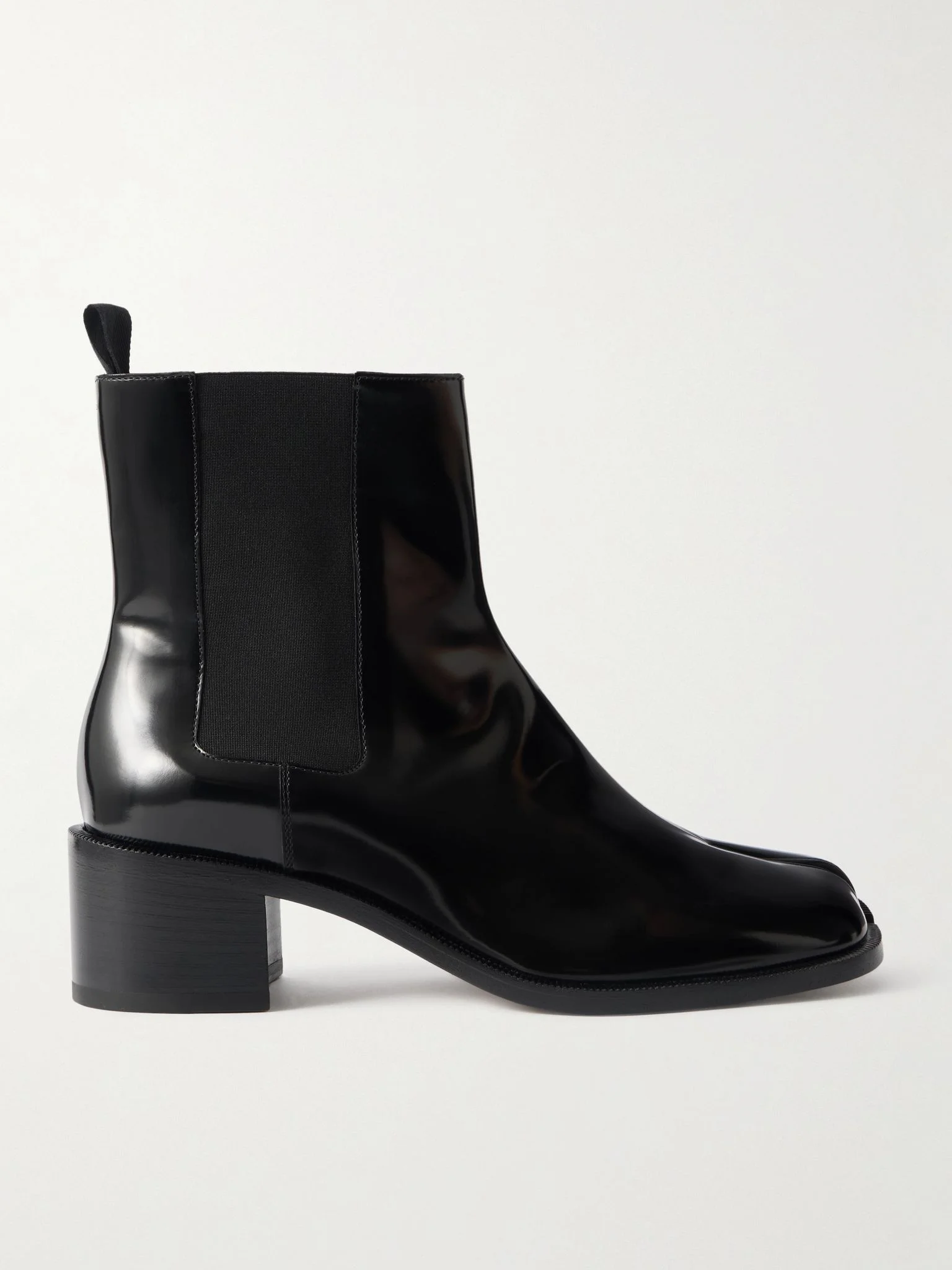 Maison Margiela's iconic 'Tabi' shoe is inspired by 15th century Japanese footwear. These Chelsea boots feature the signature split-toe design and have elasticated gussets, helping to retain their shape over time. They're made from smooth leather with a sturdy block heel. Size & Fit - Fits true to size. Take your normal size - European sizing Details & Care - Material: leather - Colour: black