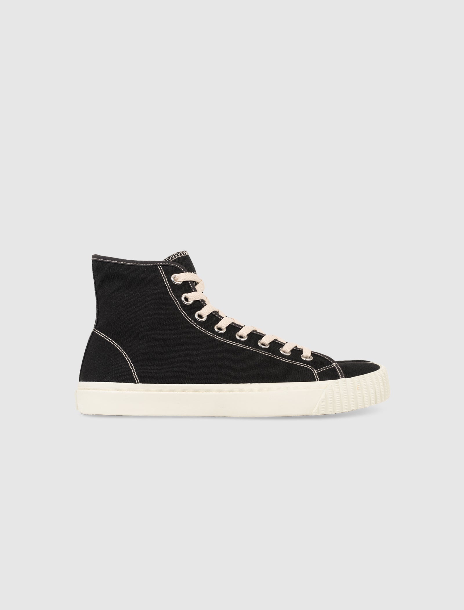 Cotton canvas high top. Rubber toe cap. Metal eyelets. Front lacing. Canvas tongue. Split toe. Contrast stitching all throughout the upper. Rubber midsole. Rubber outsole. - Cotton canvas upper SKU: S57WS0440-P4291-H0958