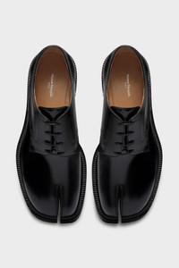 In brushed calfskin, the lace-up shoes feature a chunky cleated sole and the Tabi split-toe, inspired by the traditional 15th century Japanese sock bearing the same name – launched for the Maison's debut collection in 1989. It captures the avant-garde and insubordinate spirit of the Maison and exists as a heritage classic, continually explored through each collection. Product Details Item ID S57WQ0188P3827H8396 Upper: 100% calf leather Lining: 100% lamb leather Inside: 100% lamb leather Sole: 100% calf leather Contrast: 100% rubber Lace-up shoes in brushed leather Tabi split toe White stitching at the back Chunky lug sole Use a soft cloth soaked with water to clean and spread a neutral shoe polishing cream Made in Italy