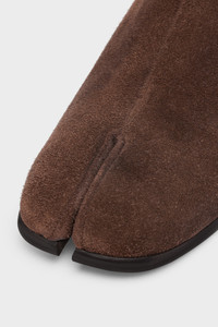 Crafted from suede, the babouche shoes feature the Tabi split-toe. Launched for the Maison's debut collection in 1989, inspired by the traditional 15th century Japanese sock bearing the same name, it captures the avant-garde and insubordinate spirit of the Maison. A heritage classic, continually explored through each collection. Maison Margiela's signature white stitch appears at the back. Product Details Item ID S57WR0051P8270T2180 Upper: 100% Calf Leather Lining: 100% Ovine Leather Inside: 100% Ovine Leather Sole: 100% Calf Leather Contrast: 100% Rubber Babouche in scratched suede Tabi split toe Dual-wear soft heel White stitching at the back Avoid friction and contact with chemicals Made in Italy
