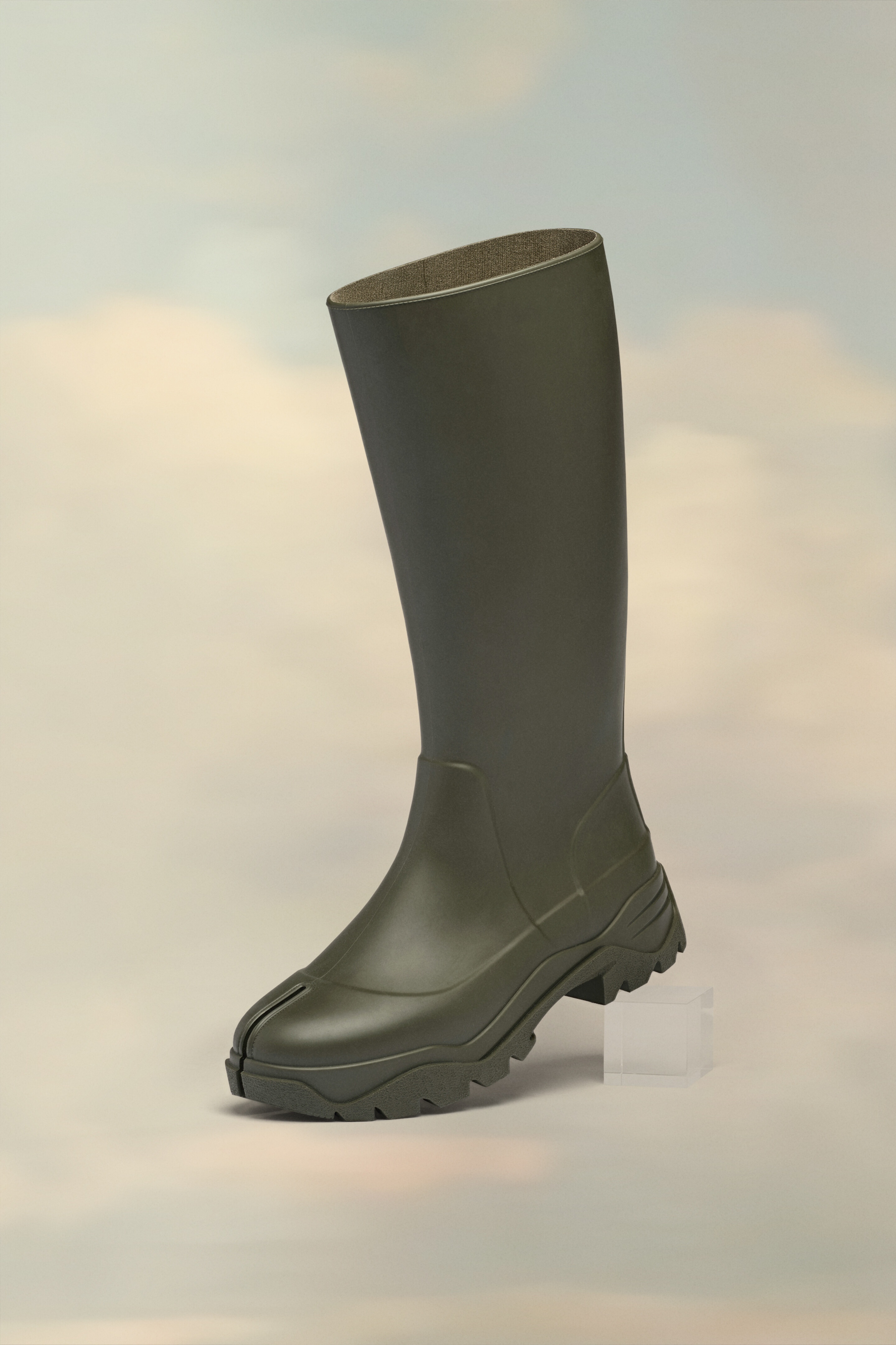 Knee-length Tabi boots in rubber with a ridged, cleated sole. Maison Margiela’s signature white stitch appears at the back. The Tabi split-toe is inspired by the traditional 15th century Japanese sock bearing the same name – launched for the Maison’s debut collection in 1989. It captures the avant-garde and insubordinate spirit of the Maison and exists as a heritage classic, continually explored through each collection. Product Details Item ID S58WW0159P5410T7431 COED Fall winter 2023 Upper: 100% Polyurethane Lining: 90% Polyamide, 10% Elastane Sole: 100% Polyurethane Rubber Tabi rain boot Tabi split toe Chunky sole Calf height White stitching at the back Made in Italy A digital certificate provided by the Aura Blockchain Consortium guarantees the authenticity of this product. Discover more on auraluxuryblockchain.com/#about