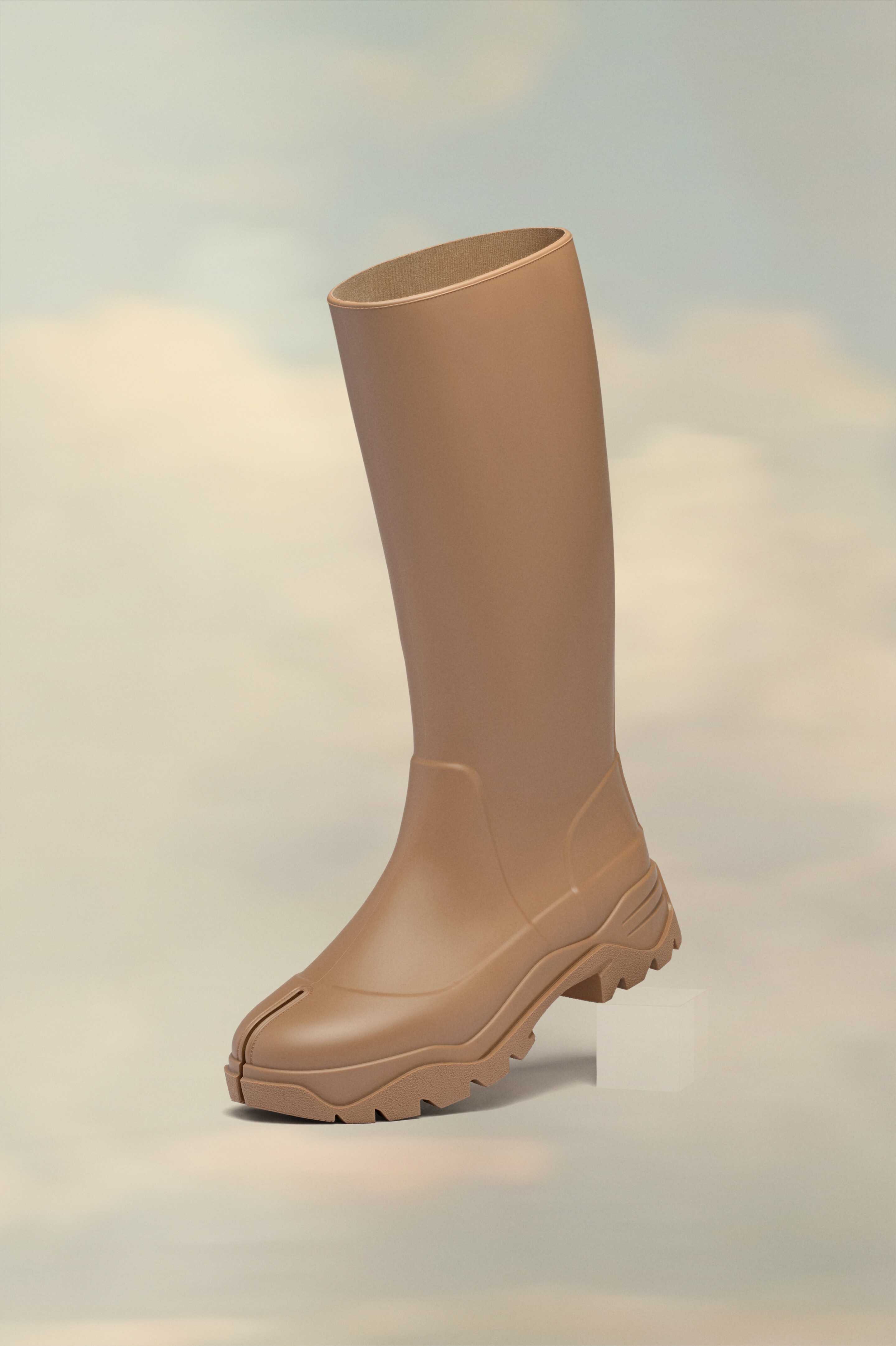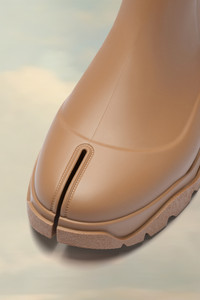 Knee-length Tabi boots in rubber with a ridged, cleated sole. Maison Margiela’s signature white stitch appears at the back. The Tabi split-toe is inspired by the traditional 15th century Japanese sock bearing the same name – launched for the Maison’s debut collection in 1989. It captures the avant-garde and insubordinate spirit of the Maison and exists as a heritage classic, continually explored through each collection. Product Details Item ID S57WW0035P5410T2172 COED Fall winter 2023 Upper: 100% Polyurethane Lining: 90% Polyamide, 10% Elastane Sole: 100% Polyurethane Rubber Tabi rain boot Tabi split toe Chunky sole Calf height White stitching at the back Made in Italy A digital certificate provided by the Aura Blockchain Consortium guarantees the authenticity of this product. Discover more on auraluxuryblockchain.com/#about