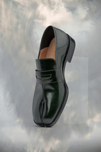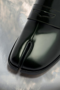 The brushed calf leather slip-on shoes feature a Tabi split-toe. The contrast heel section can be worn up or down. Maison Margiela’s signature white stitch appears at the back. The Tabi split-toe is inspired by the traditional 15th century Japanese sock bearing the same name – launched for the Maison’s debut collection in 1989. It captures the avant-garde and insubordinate spirit of the Maison and exists as a heritage classic, continually explored through each collection. Product Details Item ID S57WR0117P3827T7041 Upper: 100% Brushed calf leather Lining: 100% Lamb leather Sole: 100% leather Tabi split toe White stitching at the back Dual-wear soft heel Brand logo on the insole Internal logo stamping Use a soft cloth soaked with water to clean and spread a neutral shoe polishing cream Made in Italy A digital certificate provided by the Aura Blockchain Consortium guarantees the authenticity of this product. Discover more on auraluxuryblockchain.com/#about