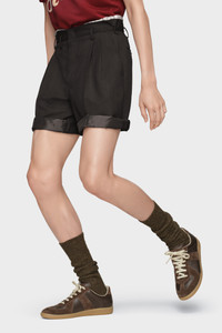These tailored shorts feature crisp pleats and an unfinished hem. A striped interior at the waistband offers a quiet take on Anonymity of the Lining – a house code that subtly inverts expectation. Maison Margiela’s signature, the four stitches, appear at the back; the opposite of a label. Product Details Item ID S50MU0090M35491001F Primary Fabric: 99% Virgin Wool 1% Cotton Tailored shorts with exposed interior waistband Front pleats Asymmetrical belt loops Four stitches at the back Made in Italy