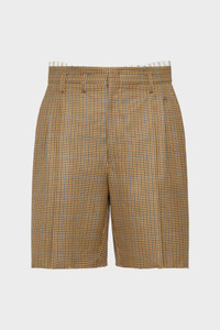 Pleated shorts in a textured suiting fabric, with a clean silhouette and subtle structure. A striped lining is revealed at the waistband – an understated detail that reflects the Maison’s Anonymity of the Lining concept. Maison Margiela’s signature, the four stitches, appear at the back; the opposite of a label. Product Details Item ID S50MU0090M35648001F Primary Fabric: 100% Wool Pocket Lining: 100% Cotton Lining: 92% Cotton 8% Polyester Half Lining: 100% Viscose-Rayon Tailored shorts with exposed interior waistband Front pleats Asymmetrical belt loops Four stitches at the back Made in Italy