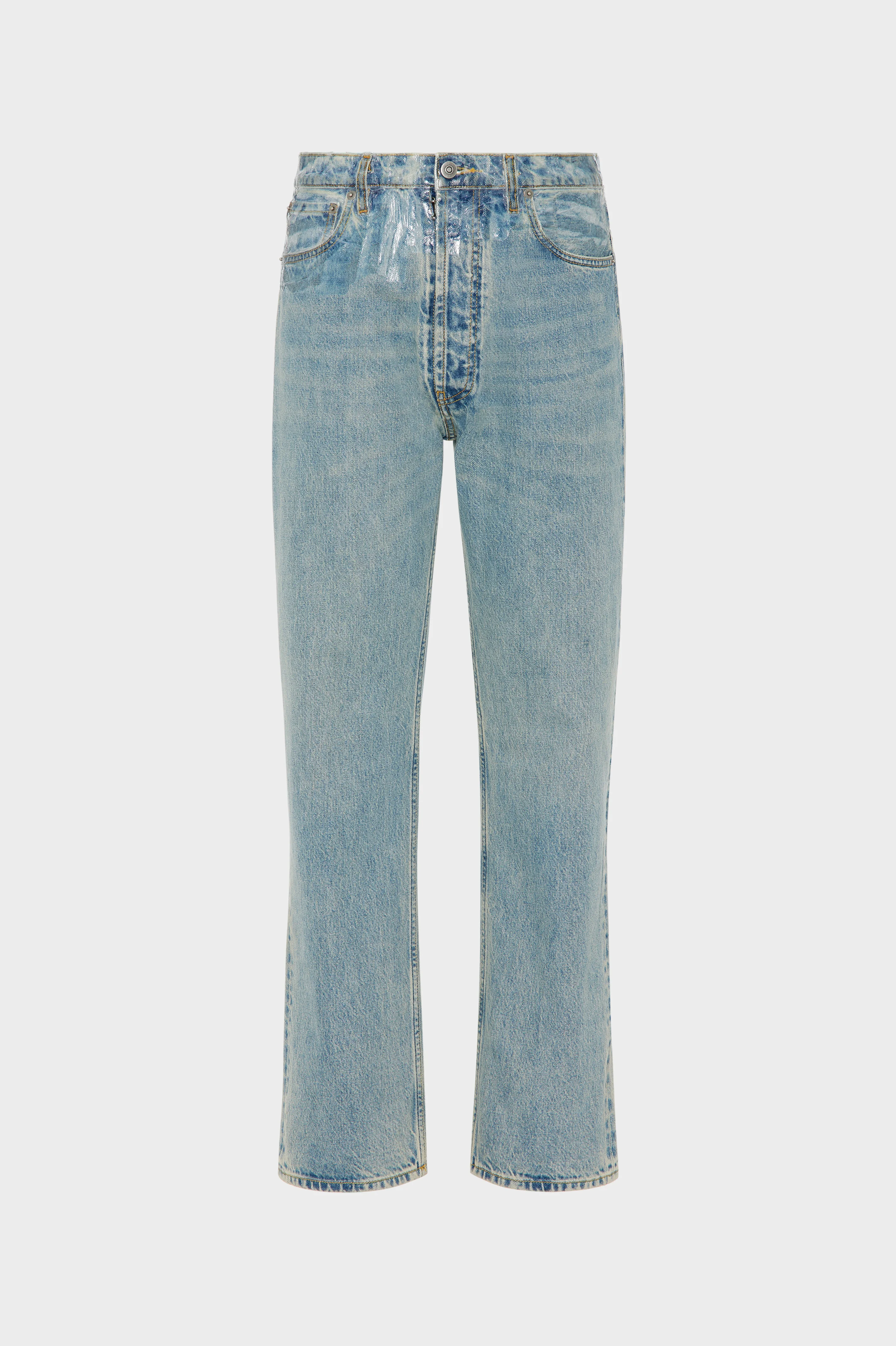 These jeans explore the intervention of a technical finish, with transparent tape applied across the waist to partially bind and distort the denim. A straight-leg silhouette with familiar pocket placement allows the taped treatment to disrupt the garment’s expected form. At the back, the Maison’s signature four stitches appear; the opposite of a label. Product Details Item ID S67LA0046M30066962 Primary fabric: 100% cotton Full-length straight-leg Paint-effect detail on front Button and zip closure Four stitches at the back Made in Italy