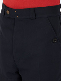 tapered high-rise trousers Highlights - Navy blue - Button fastening - Side pockets - Belt loops Made in Italy Composition Polyester 65%, Cotton 35% Washing instructions Read Manufacturer Guidelines