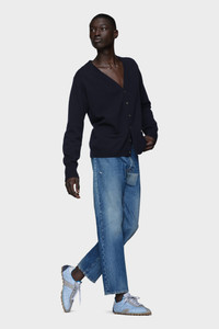 Crafted in faded denim with subtle abrasions, these jeans feature a tonal patch at the back that evokes the Maison’s Memory of concept – capturing the trace of what once was. Maison Margiela’s signature, the four stitches, appear at the back; the opposite of a label. Product Details Item ID S50LA0241S30561986 Primary Fabric: 100% Cotton Lining: 65% Polyester 35% Cotton Denim jeans in a faded wash Rectangular patch and stitch detail at the upper thigh Straight leg Four stitches at the back Made in Italy