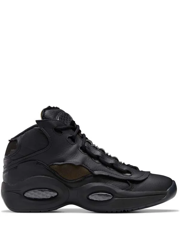 The Question Memory Of in Black from Maison Margiela x Reebok collaboration "Memory Of" Highlights - black colour way - tear/deconstructed design - high top - round toe - front lace-up fastening - branded insole - rubber sole Designer ID: GW5001