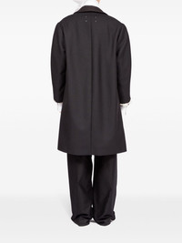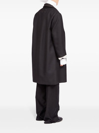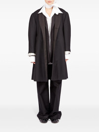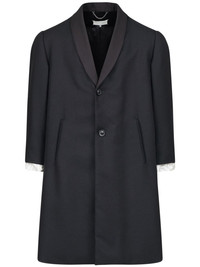 Anonymity of the lining coat Highlights - Black - Wool-mohair blend - Layered details - Signature four-stitch logo - Shawl lapels - Front button fastening - Long sleeves - Two side welt pockets - Straight hem - Knee-length - Striped lining Made in Italy Composition Lining: Cotton 100%, Viscose 55%, Cupro 45% Outer: Wool 70%, Silk 63%, Cotton 37%, Mohair 30%
