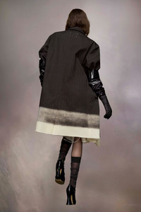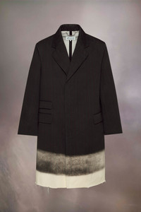 The coat has a notched collar, hidden placket for a minimal silhouette and asymmetric pockets. The heritage trompe l'oeil print gives the impression of a pinstripe suit fabric, which morphs into the plain lower section – as if a printer has run out of ink for a degraded look. Maison Margiela’s signature, the Four stitches, appear at the back; the opposite of a label. Product Details Item ID S50AA0139M35011001S Primary fabric: 100% cotton Sleeve lining: 80% cotton, 20% polyester Pocket lining: 100% cotton Unlined cotton coat with heritage pinstripe print Concealed single-breasted closure Notch lapel Rough hem Front flap pockets Basting stitches on cuffs Inside zip pocket Single vent Fuor stitches at the back Made in Italy Model is 180cm tall and wears a size 46.