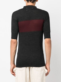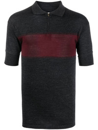 two-tone zip-up polo shirt dark grey/dark red wool-cotton blend fine knit two-tone design ribbed edge short front zip fastening polo collar short sleeves straight hem Imported Composition Wool 72%, Polyamide 18%, Cotton 10% SIZE & FIT Model measurements Height 5 ft 11 in(1.8 m) Bust/Chest 31.49 in(80 cm) Hips 36.22 in(92 cm) Waist 25.59 in(65 cm) FittingInformation This piece fits true to size. We recommend you get your regular size Cut for a slim fit Made with a mid-weight fabric Washing instructions Machine Wash