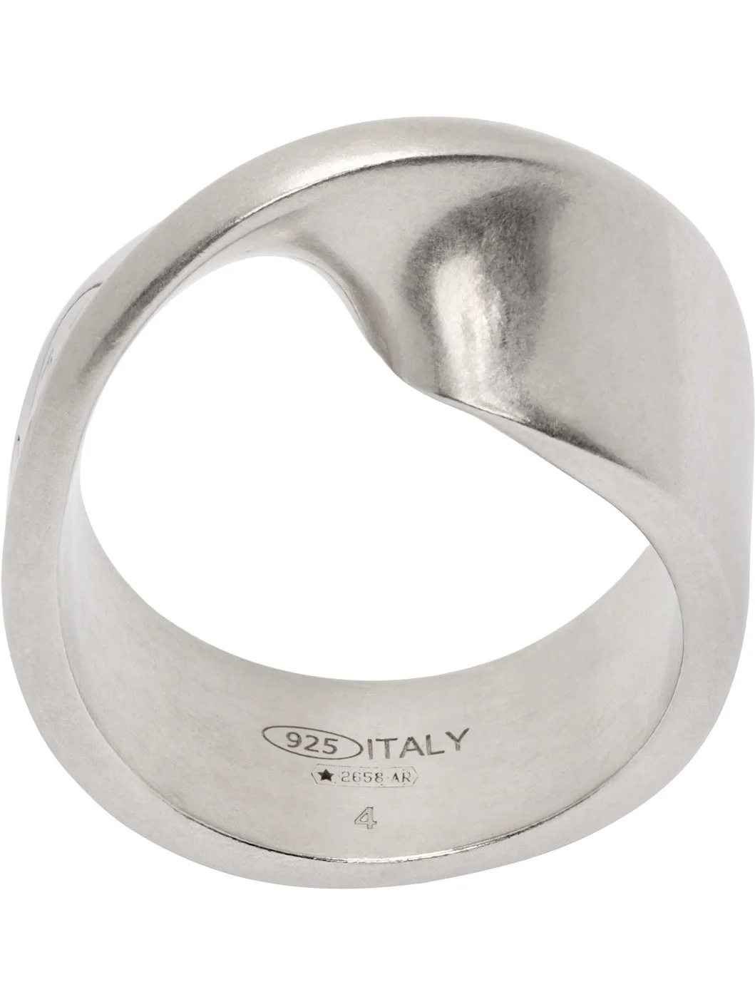 Ring in sterling silver. · Engraved logo and twisted detailing at face · Hallmarking at inner band Supplier color: Palladio buratta 925 sterling silver. Made in Italy 252168M147000