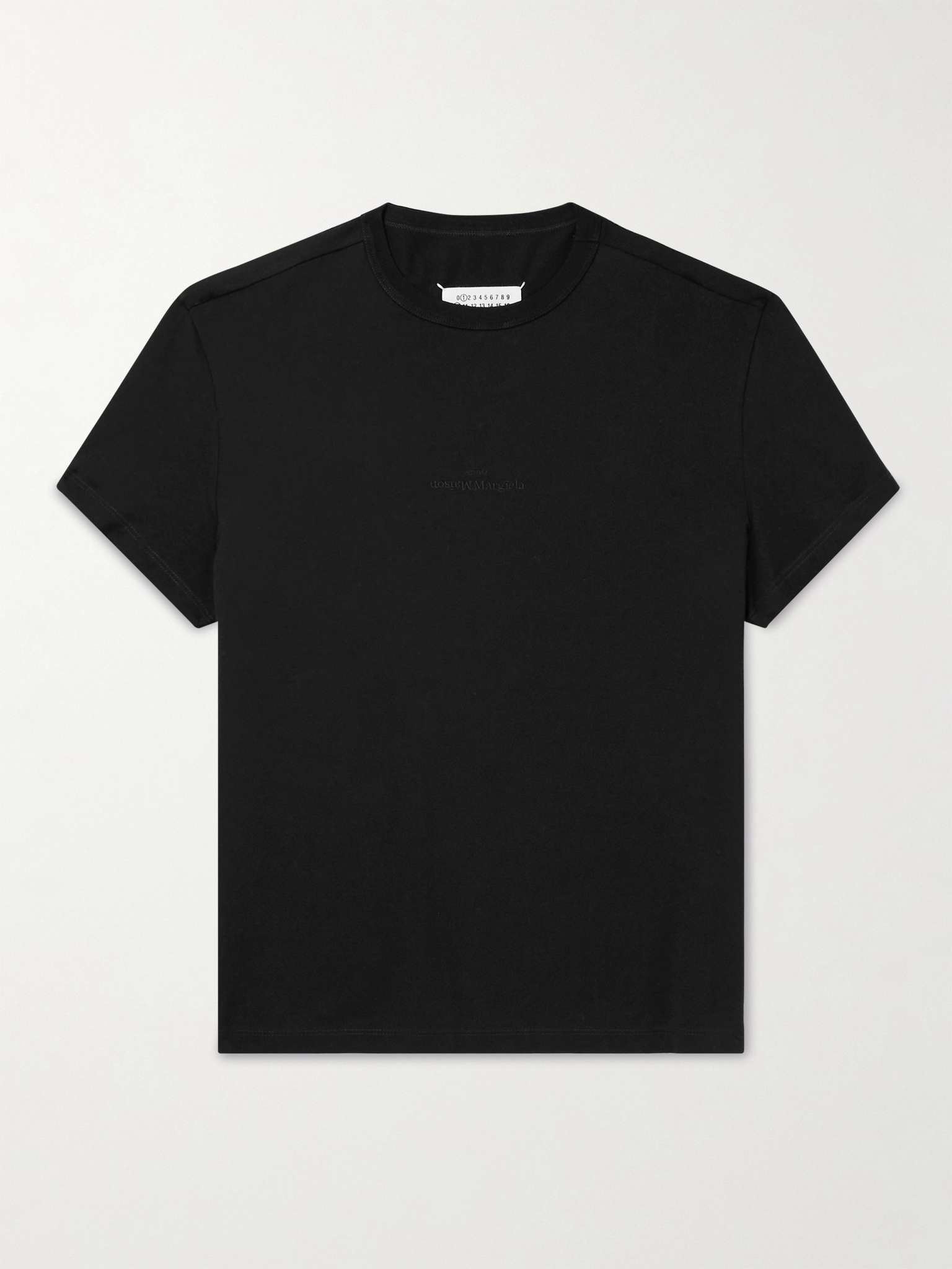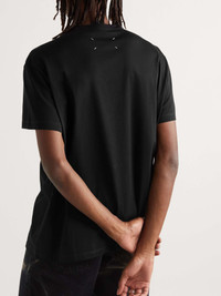 Maison Margiela's otherwise simple tee is embroidered with the brand's logo in tonal, reversed lettering. It's made from cotton-jersey and has a relaxed cut. Size & Fit - Fits true to size. Take your normal size - The model is wearing a size larger to achieve a looser fit across the shoulders - This T-shirt has a relaxed cut - Mid-weight, slightly stretchy fabric - Model wears a L - Model measures: chest 38"/ 96cm, height 6'1"/ 185cm Details & Care - Black cotton-jersey - 100% cotton - Machine wash - This item has been imported