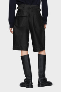 Crafted in cotton satin with a strong stone wash, these shorts feature utility-inspired pockets and a tailored silhouette. The hem shows subtle crease marks – evidence of the Maison’s Memory of the Hem technique, which preserves traces of previous construction. Maison Margiela’s signature, the four stitches, appear at the back; the opposite of a label. Product Details Item ID S50MU0089M35519900 Primary fabric: 100% cotton Cotton shorts with paneled construction Belt loops and rear waist adjusters Slanted front pockets and layered patch pockets at the sides Unfinished hems Four stitches at the back Made in Italy