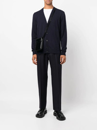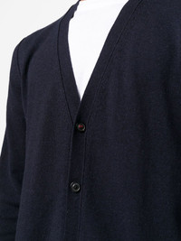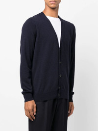 V-neck cashmere cardigan Maison Margiela's cardigan embraces a cosy, minimalist aesthetic. The simple V-neck silhouette is crafted from soft blue cashmere. Highlights - Navy blue - Cashmere - V-neck - Front button fastening - Long sleeves Made in Italy Composition Cashmere 100% SIZE & FIT Model measurements Height 5 ft 10 in(1.77 m) Bust/Chest 29.92 in(76 cm) Hips 33.46 in(85 cm) Waist 24.01 in(61 cm) Washing instructions Hand Wash