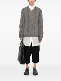 V-neck sweater Highlights - Black - Drop shoulder - Long sleeves - Ribbed cuffs and hem Imported Composition Linen/Flax 40%, Cotton 30%, Polyester 30% SIZE & FIT Model measurements Height 6 ft 2 in(1.87 m) Bust/Chest 38.97 in(99 cm) Hips 37.99 in(96.5 cm) Waist 29.52 in(75 cm) FittingInformation Designed to be unstructured, offering a loose fit throughout Made with a midweight knit, this piece offers some stretch