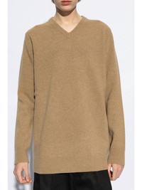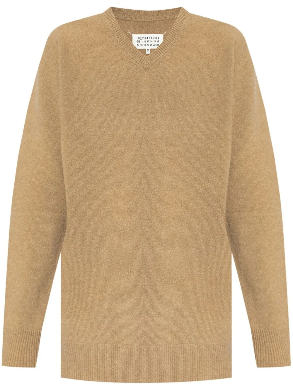 V-neck wool jumper Highlights - Brown - Wool - Knitted construction - Signature four-stitch logo - V-neck - Drop shoulder - Long sleeves - Ribbed edge - Straight hem Made in Italy Composition Wool 100%