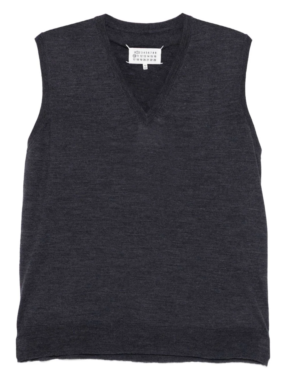 V-neck wool vest Highlights - Dark blue - V-neck - Sleeveless - Straight hem Imported Composition Wool 100% Washing instructions Dry Clean Only