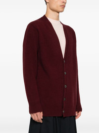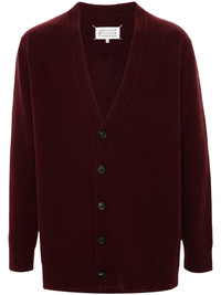 washed wool cardigan Highlights - Bordeaux red - Wool - Knitted construction - V-neck - Long sleeves - Signature four-stitch logo at the back - Ribbed cuffs and hem - Front button fastening Made in Italy Composition Wool 100% SIZE & FIT Model measurements Height 6 ft 1 in(1.85 m) Bust/Chest 35.82 in(91 cm) Hips 37.79 in(96 cm) Waist 29.13 in(74 cm) FittingInformation Designed for a relaxed fit, this piece allows for comfort and movement when worn The ribbed hem offers a close, comfortable fit Made with a midweight knit, this piece offers some stretch
