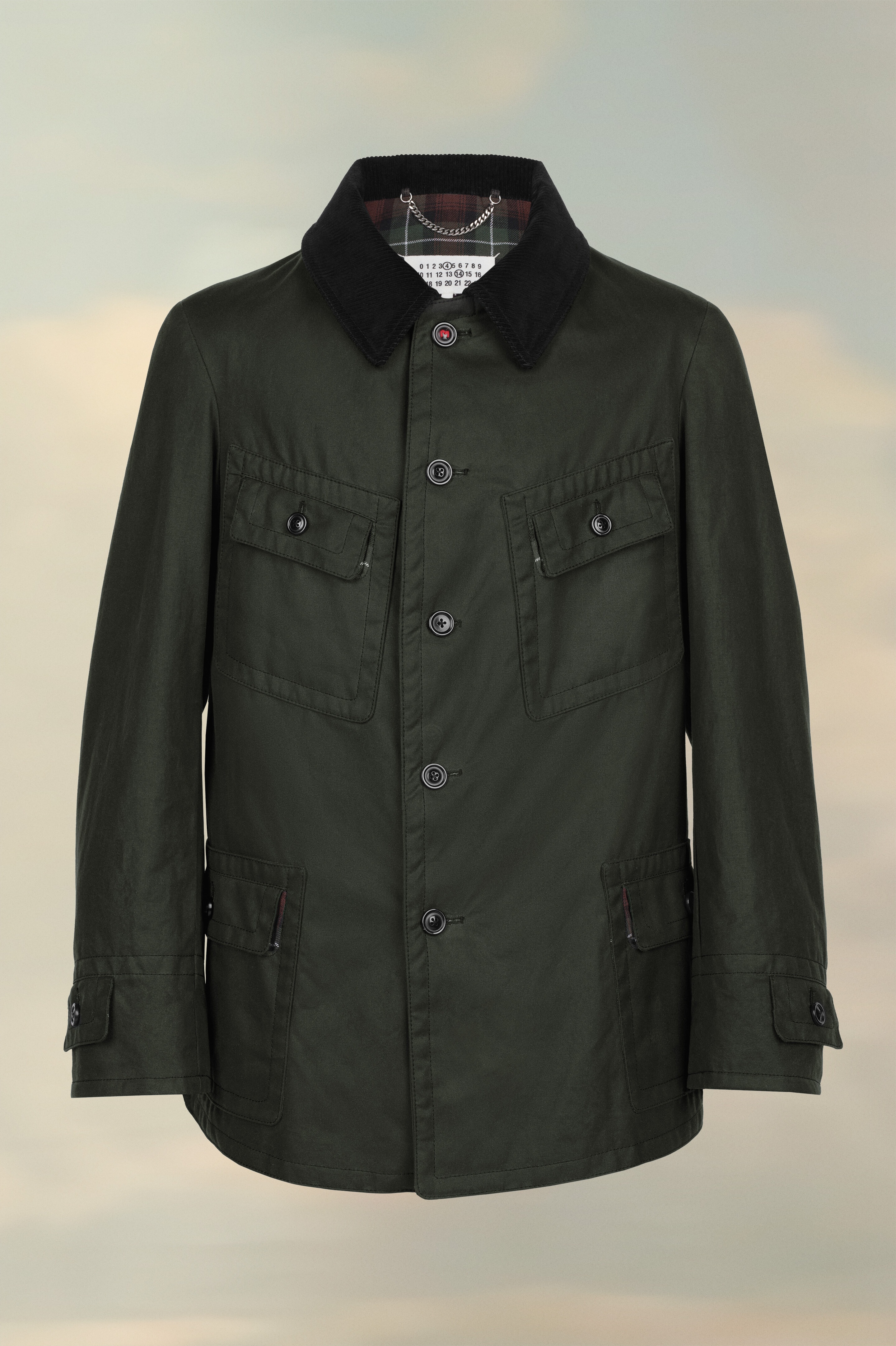 In waxed cotton, this jacket has a utilitarian design with buttoned pockets and turned-up cuffs. The M button appears at the collar and the back has an adjustable belt and further pockets. The four white stitches show the hand of the Maison: the opposite of a label. Product Details Item ID SI1AM0001S47739616 The model is 5'10" tall and wears size 46.