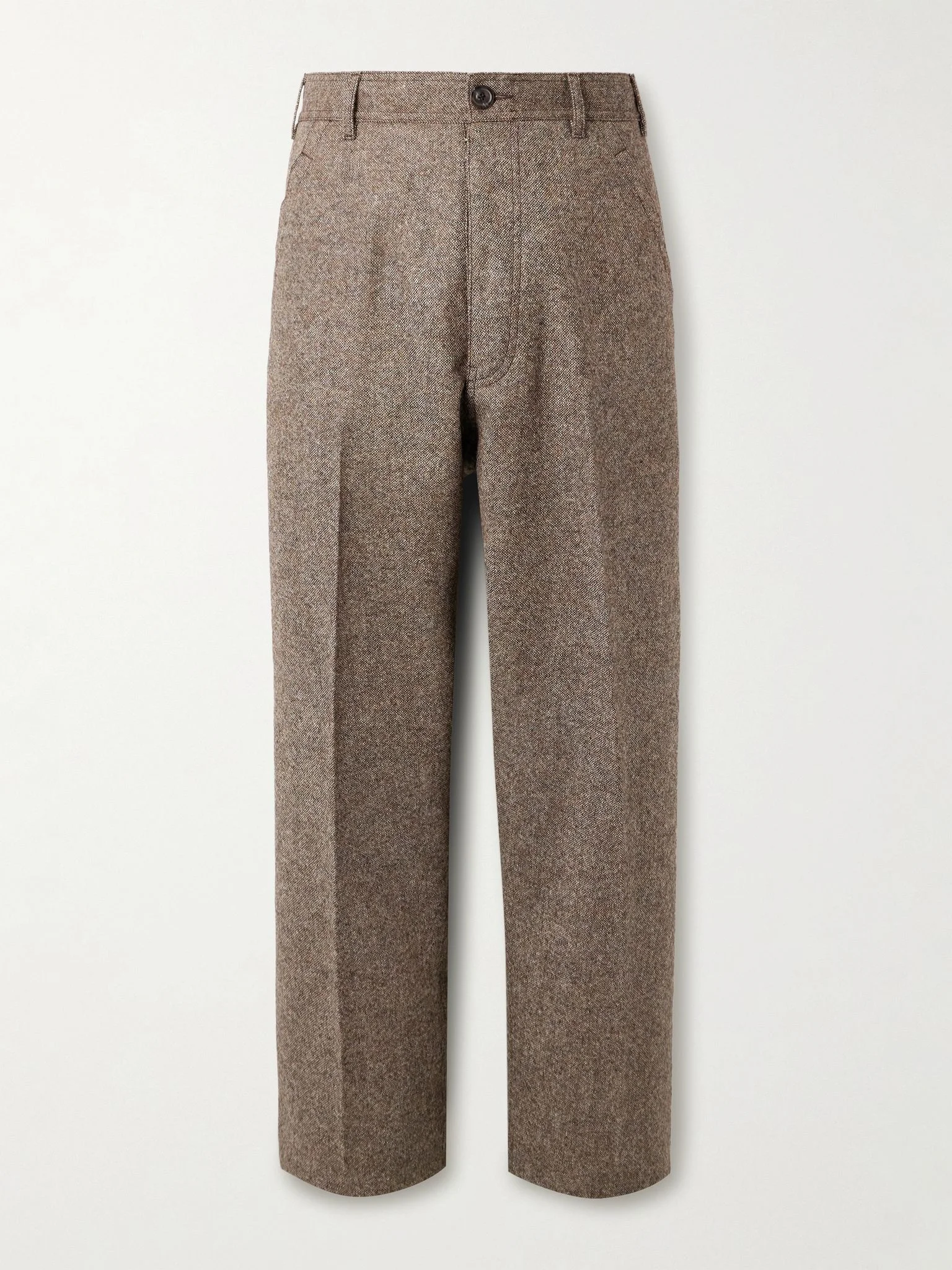 Maison Margiela's trousers are tailored from a melange wool-canvas and have a wide-leg fit. They're detailed with pressed creases and have unfinished hems so you can alter the break. Size & Fit - Fits true to size. Take your normal size - Wide leg, low-crotch style - Unfinished hems; alter to fit - Mid-weight, non-stretchy fabric - Model is shown wearing an IT 46 - Model measures: waist size 30, height 6'2"/ 188cm Details & Care - Brown wool-canvas - Button, hook and zip fastening - 100% wool - Dry clean