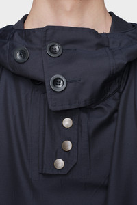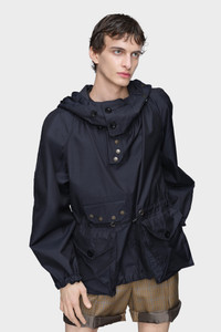 Cut with a relaxed silhouette, this jacket is finished with a stand collar and flap pockets – drawing on the codes of practical countryside outerwear. The technique Memory of the creases preserves the traces of worn folds, adding subtle texture and a lived-in quality. Maison Margiela’s signature, the four stitches, appear at the back; the opposite of a label. Product Details Item ID S50AM0641M35477510 Primary fabric: 60% virgin wool 40% polyamide-nylon Lining: 100% cotton Short parka with drawstring waist Hood with button detailing Flap patch pockets at the front Four stitches at the back Made in Italy
