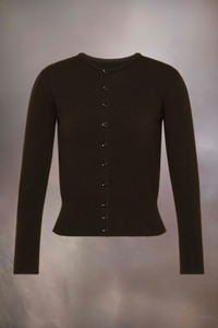 In virgin wool, the minimal knitwear cardigan has a classic crew-neck design with tonal button front. It offers a slightly cropped relaxed fit. Featuring long sleeves with ribbed trims around the neck, cuffs and at the hem for further texture. Maison Margiela's signature, the four stitches, appear at the back; the opposite of a label. Product Details Item ID S51HP0016M13090144M Primary Fabric: 100% Virgin Wool Gauge 12 Virgin wool cardigna Crewneck Button closure Ribbed trims Four stitches at the back Made in Italy Model is 178 cm tall and wears a size S.