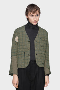 Echoing the spirit of garments passed down through generations, this cardigan is constructed with worn-in checks, tonal patchwork and a visibly altered silhouette. It is crafted in a Charles patching knit – named after King Charles, who was known for mending his own clothing. Maison Margiela’s signature, the four stitches, appear at the back; the opposite of a label. Product Details Item ID S50HP0033M13146613J Primary Fabric: 100% Virgin Wool Lining: 100% Cotton Checked cardigan in virgin wool Distressed finish with raw stitching Button front fastening and patch pockets Contrast cotton panels at the inner sleeves Four stitches at the back Made in Italy