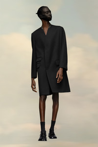 The V-neck contrast collar coat comes in wool cavalry. It has asymmetric flap pockets and a hidden placket for a clean aesthetic. Product Details Item ID SI1AA0001S48109900 Outer: 100% Wool Lining: 100% Viscose-Rayon Pocket Lining: 100% Cotton Collarless coat Y-neckline Concealed front button fastening Front flap pockets Basting stitch on cuffs and shoulders Four stitches at the back Made in Italy