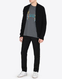 Virgin wool flannel trousers with a drawstring around the waist. Four pockets. Bottom leg opening measures 19cm. The Maison's iconic 4 stitches make their mark on the back. Item details 100% Virgin Wool Flannel Button, zip