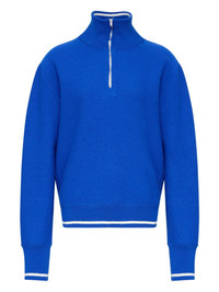 wool jumper Highlights - Electric blue - Short front zip fastening - Spread collar - Ribbed cuffs and hem - Contrasting trim Imported Composition Wool 100% Washing instructions Read Manufacturer Guidelines