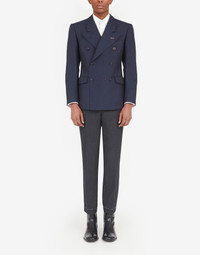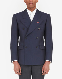 Double-breasted suit jacket in British mohair for an elegant appearance, with flap pockets. Red work-in-progress tack stitch details can be seen at the shoulder and at the 'Memory of' cuffs. It features the M button embroidered in red – part of the identity of the ICONS collection. The Maison's four-stitches moniker adorns the back. Made in Italy. Item details 70% Wool, 30% Mohair wool Long sleeves Lapel collar With shoulder pad Button closing Partially lined interior One inside pocket Contains non-textile parts of animal origin