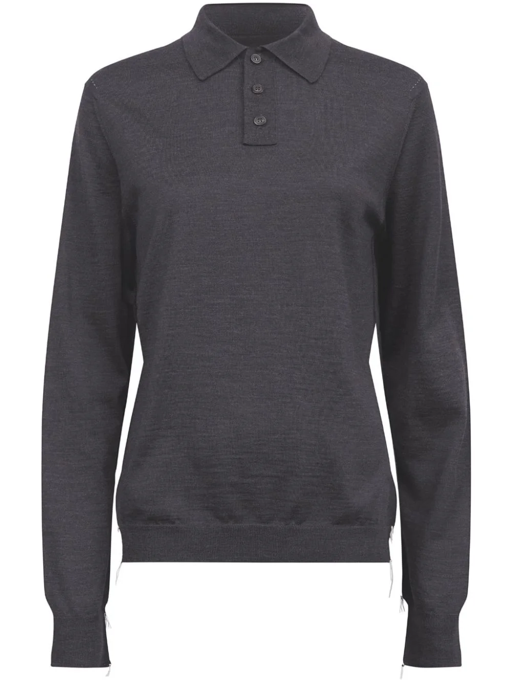 wool polo jumper Highlights - Charcoal grey - Wool - Fine knit - Short front button fastening - Polo collar - Long sleeves - Signature four-stitch logo - Decorative stitching - Ribbed cuffs and hem - When buying this unisex item, keep in mind that it is graded in standard men's sizing. Made in Italy Composition Wool 100%