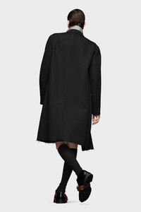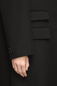 In a virgin wool silk blend with raw edges, the long coat features Work-in-progress stitching for a nonchalant approach to dressing. It comes complete with notched collar and asymmetric pocket placement. Maison Margiela's signature, the Four stitches, appear at the back; the opposite of a label. Product Details Item ID S50AA0150M35039900 Composition: 63% virgin wool, 37% silk Lining: 55% viscose-rayon, 45% cupro Wool silk coat Concealed single-breasted closure Notch lapel Raw-edge hem Front flap pockets Basting stitches on cuffs Inside zip pocket Single vent Four stitches at the back Made in Italy Model is 6'1" tall and wears a size 46.