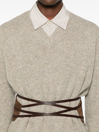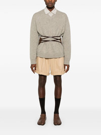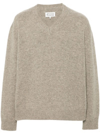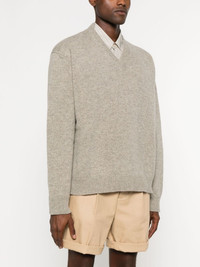 wool sweater Highlights - Taupe grey - Wool - Knitted construction - Melange effect - Ribbed v-neck - Long sleeves - Ribbed cuffs and hem - Straight hem Made in Italy Composition Wool 100% SIZE & FIT Model measurements Height 6 ft 2 in(1.88 m) Bust/Chest 36.61 in(93 cm) Hips 35.82 in(91 cm) Waist 27.95 in(71 cm) FittingInformation Designed to be unstructured, offering a loose fit throughout The ribbed hem offers a close, comfortable fit Made from a midweight non-stretch fabric, this piece offers minimal elasticity when worn This piece fits true to size – take your usual size Washing instructions Dry Clean Only