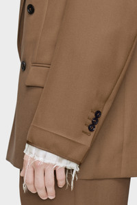 Tailored in virgin wool, this double-breasted jacket features a raw finish with anonymity of the lining at the sleeve hem revealing its construction, articulating the Maison’s deconstructive philosophy. At the back, the Maison’s signature four stitches appear; the opposite of a label. Product Details Item ID S50BN0552M35745134 Primary fabric: 100% virgin wool Lining: 57% acetate 43% viscose-rayon Pocket lining: 100% cotton Sleeve lining: 100% cupro Tropical wool Double-breasted front Long sleeves Notched lapel neckline Front button closure Four stitches at the back Made in Italy