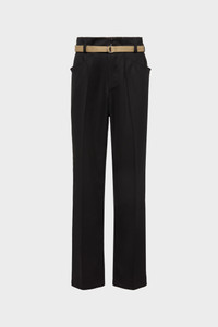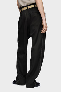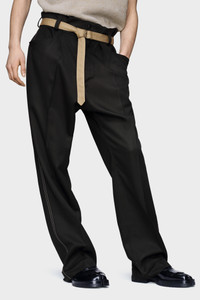 Cut in wool canvas, these trousers are defined by clean lines and a high waistband, pairing precision tailoring with utilitarian contrast. A webbing belt adds a practical edge, reinforcing the functional tone of the piece. Maison Margiela’s signature, the four stitches, appear at the back; the opposite of a label. Product Details Item ID S50KA0688M35518900 Primary Fabric: 100% Virgin Wool Secondary Fabric: 60% Polyester 40% Cotton Pocket Lining: 100% Cotton Wool trousers with integrated belt Straight leg with pressed creases Wide belt loops and D-ring hardware Angled front panel construction Four stitches at the back Made in Italy