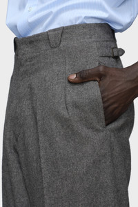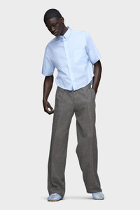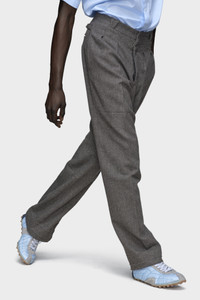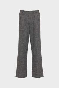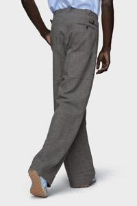 These tailored trousers feature soft pleats, subtle seam detailing and are finished with the memory of the hem technique. The clean lines and slightly flared leg reflect the Maison’s elevated interpretation of equestrian dress codes. Maison Margiela’s signature, the four stitches, appear at the back; the opposite of a label. Product Details Item ID S50KA0686M35562854M Primary Fabric: 60% Wool 30% Polyester 10% Polyamide-Nylon Half Lining: 100% Viscose-Rayon – Pocket Lining: 100% Cotton Straight-leg trousers in structured wool blend Pleated front with belt loops at the waistband Double-layered cuffs with stitched detailing Four stitches at the back Made in Italy