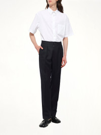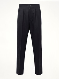 Maison Margiela's Wool Twill Pants in Blue is a sophisticated addition to any wardrobe, offering a timeless silhouette with a modern twist. These pants are designed for both comfort and style, making them perfect for various occasions. - Composition: Primary Fabric: 100% Virgin Wool - Half Lining: 100% Viscose-Rayon - Lining: 100% Cotton - Pocket Lining: 100% Cotton - Classic straight-leg fit - Subtle pleat detailing - Concealed front fastening - Side and back pockets for functionality - Versatile blue hue - Made in: nan Model is 187 cm and wears size 48 SKU: S67KA0078M35504 524