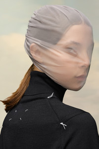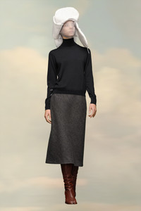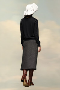 In fine Merino wool, this high-neck sweater demonstrates the Maison's work-in-progress house code with exposed threads around the neck and back. Four white stitches show the hand of the Maison: the opposite of a label. Gauge 18. The model is 178cm tall. Model wears size S.