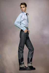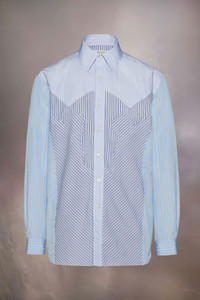 In classic stripe cotton, the shirt features a yoke, inspired by the famous ink blots of the Rorschach test, with swirling lines at the chest and shoulders to allude to the iconic yokes of the American West. Maison Margiela’s signature, the Four stitches, appear at the back; the opposite of a label. Product Details Item ID S50DT0029STZ128961 Primary fabric: 100% cotton Classic striped cotton shirt Mother of pearl button closure Décortiqué details Rough cut Four stitches at the back Made in Italy Model is 187cm tall and wears a size 39.