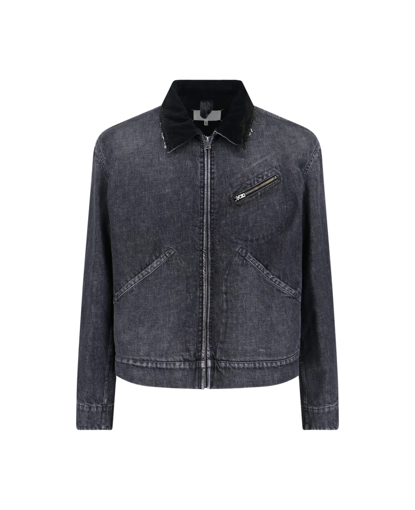 Maison Margiela zip jacket in black cotton denim with classic collar, front closure, long sleeves, front zip pocket, two welt pockets on the front, Four Stitches detail embroidered at the back, straight hem. Composition: 100% Cotton Made in: Italy Color: Black Size and fit: - Vestibilita regolare Model number: S67AM0107M30036962