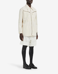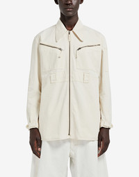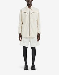 Item details 100% Cotton Denim Solid color Long sleeves Classic Neckline Strapped cuffs Four pockets Zipper closure Unlined Side slit hemline