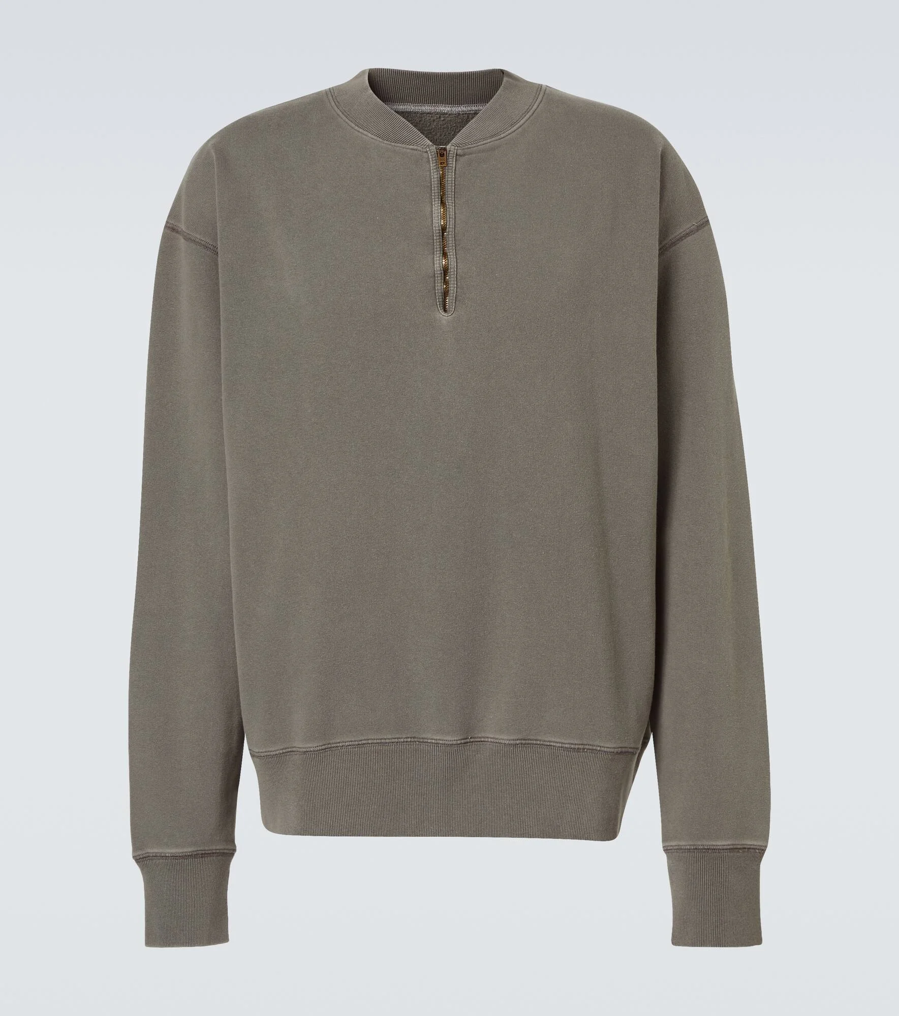Made from pure cotton, this Maison Margiela sweatshirt is shaped into a relaxed silhouette with a partial zip-up front. This piece is finished with four stitches at the back, highlighting the absence of a traditional garment label. Product Details - Material: 100% cotton - Care instructions: machine wash at 30 degrees - Made in Italy - Designer color name: Vintage Grey - Item color: gray - Hardware color: antique gold - Closure: partially zipped front - Cuff: ribbed - Hem: ribbed - Item number: P01081006 Size & Fit - True to size - Dropped shoulders - Designed for a loose fit - Slightly stretchy fabric - Falls to the hip - Height of model is 188cm-74" and wears a size L