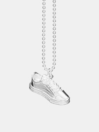 MIHARA YASUHIRO necklace in silver, ball chain, signature sneaker pendant, lobster claw fastening. Made in Japan Length - 22"