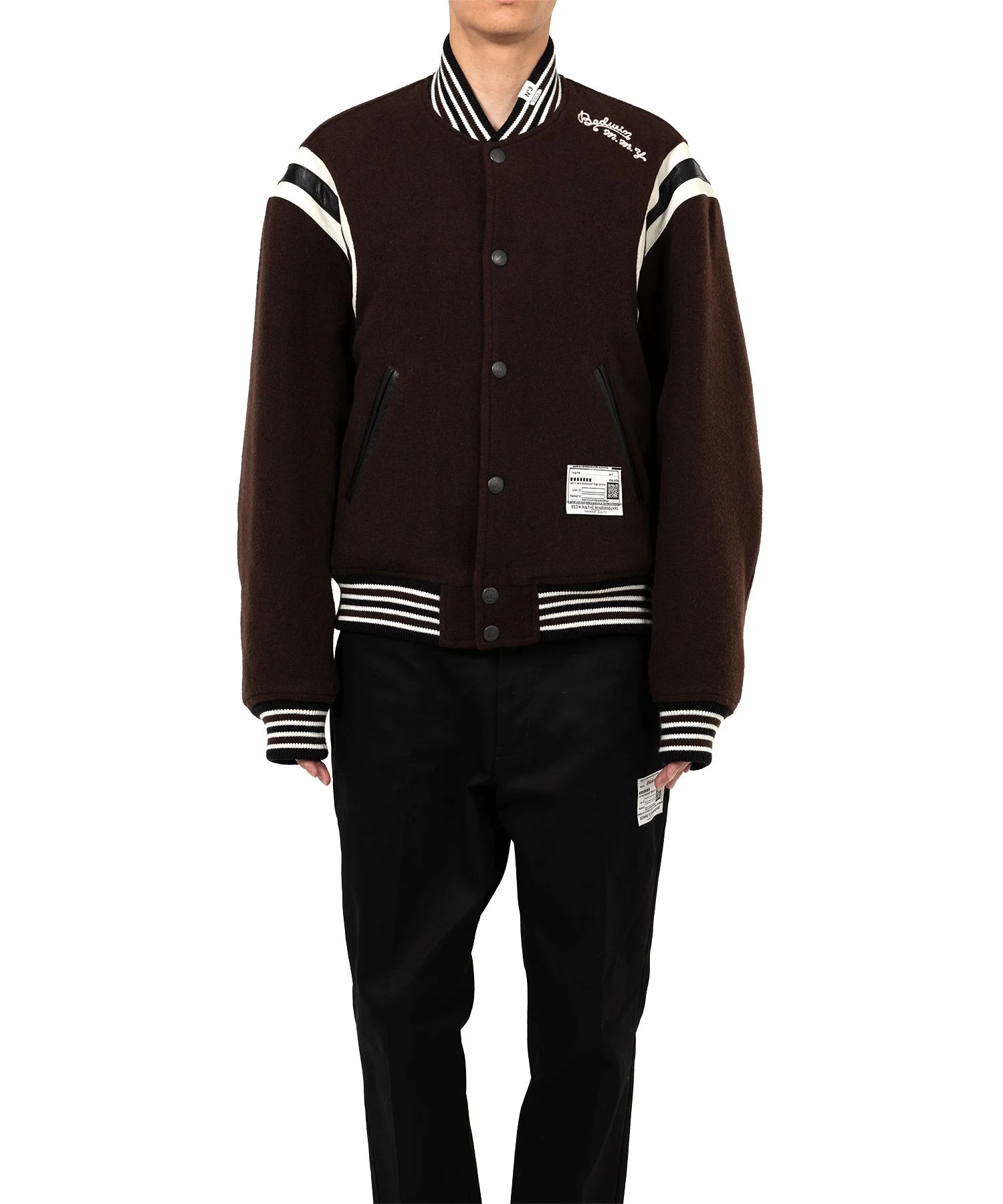"BEDWIN & THE MMY” Stadium Jacket Collaboration item with BEDWIN. Melton fabric stadium jacket. Embroidered collaboration brand logo. Button-up closure. Side pockets. Wearing model : 185cm Wearing size : 48 =About =BEDWIN & THE HEARTBREAKERS A Tokyo-born brand with a 20-year history, known for its unique style that fuses streetwear with classic tailoring. While rooted in traditional craftsmanship, it incorporates a modern, playful approach to establish its distinct style. At the core of the brand lies a philosophy of “preppy yet punk,” emphasizing the reinterpretation and reconstruction of fashion traditions. Influences from the subcultures of the 1980s and 1990s, particularly music and film, have shaped its designs and brand aesthetic. ※Product images may appear different from the actual item due to lighting conditions during photography or variations in monitor settings. ※Some photos feature sample items; actual products may differ slightly in finish or sizing. ※Color, texture, and specifications may vary slightly due to differences in production timing or individual characteristics of each piece. We appreciate your understanding. - Item No: C15BL012 - Brand: Maison MIHARA YASUHIRO - Category: MENS » OUTER » BLOUSON - Season: 2025 A/W - Material: WOOL70% POLYESTER20% NYLON5% ACRYLIC5% - Made In: CHINA