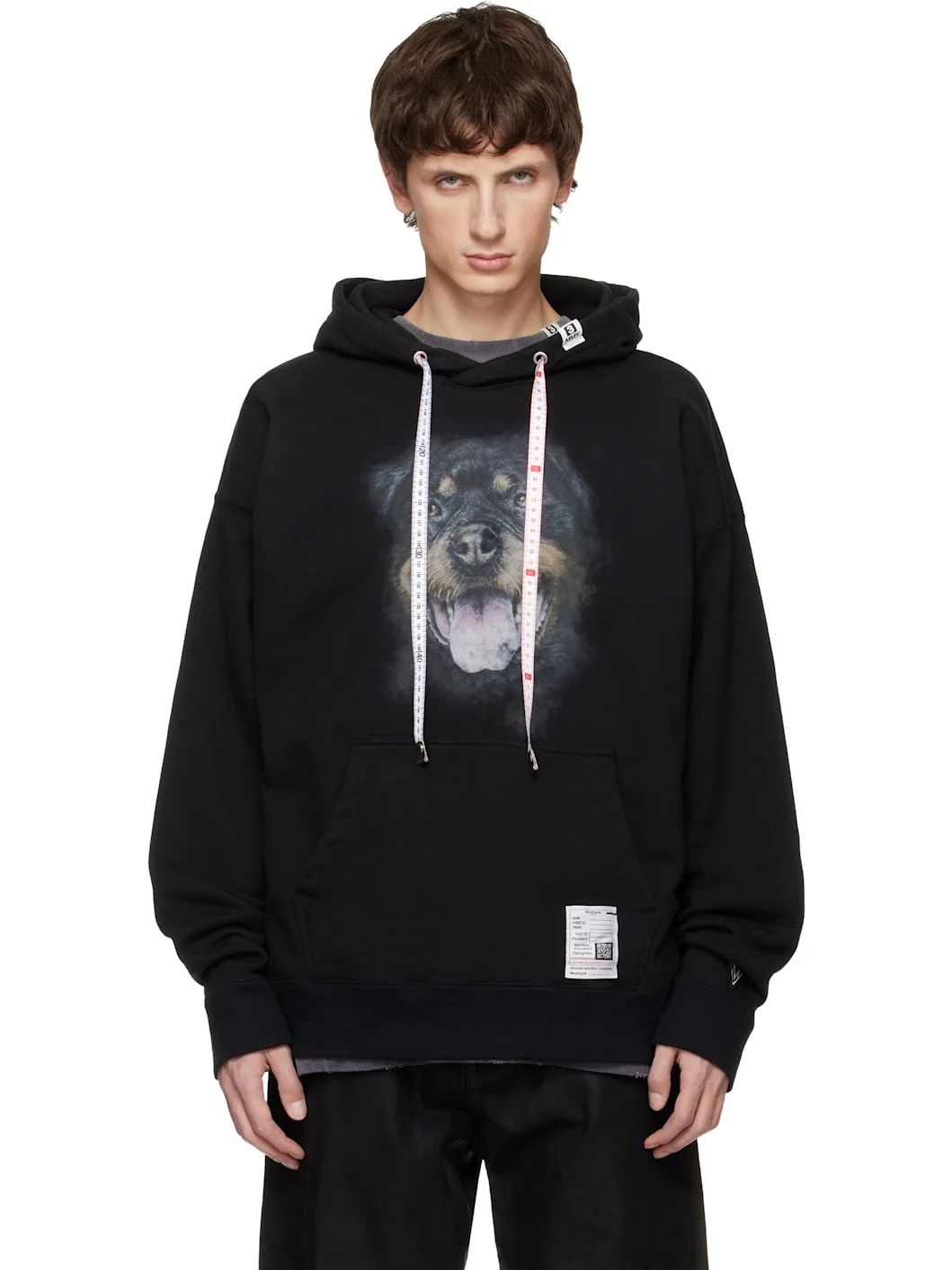 French terry hoodie. · Drawstring and logo flag at hood · Graphic printed at front · Kangaroo pocket and logo patch at waist · Vented rib-knit hem and cuffs · Dropped shoulders · Logo patch at cuff · Text printed at back Supplier color: Black 100% cotton. Made in Japan 252551M202011