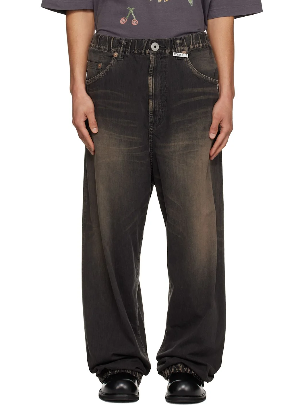 Non-stretch denim jeans. · Fading and whiskering throughout · Straight-leg · Concealed drawstring at elasticized waistband · Logo flag at belt loops · Five-pocket styling · Zip fly · Logo flag and logo patch at front · Logo patch at back pocket Supplier color: Black 100% cotton. Made in Japan 261551M186003