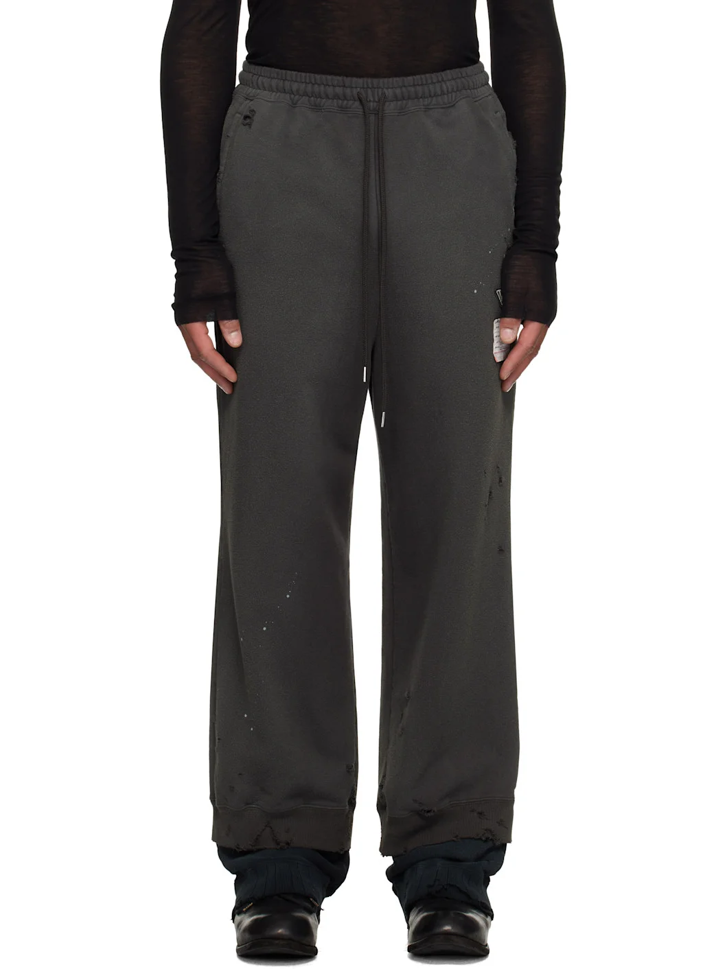 French terry sweatpants. · Fading and distressing throughout · Drawstring at elasticized waistband · Three-pocket styling · Logo patches at front · Rib-knit layered cuffs Supplier color: Black Body: 100% cotton. Trim: 96% cotton, 4% polyurethane. Made in Japan 252551M190003